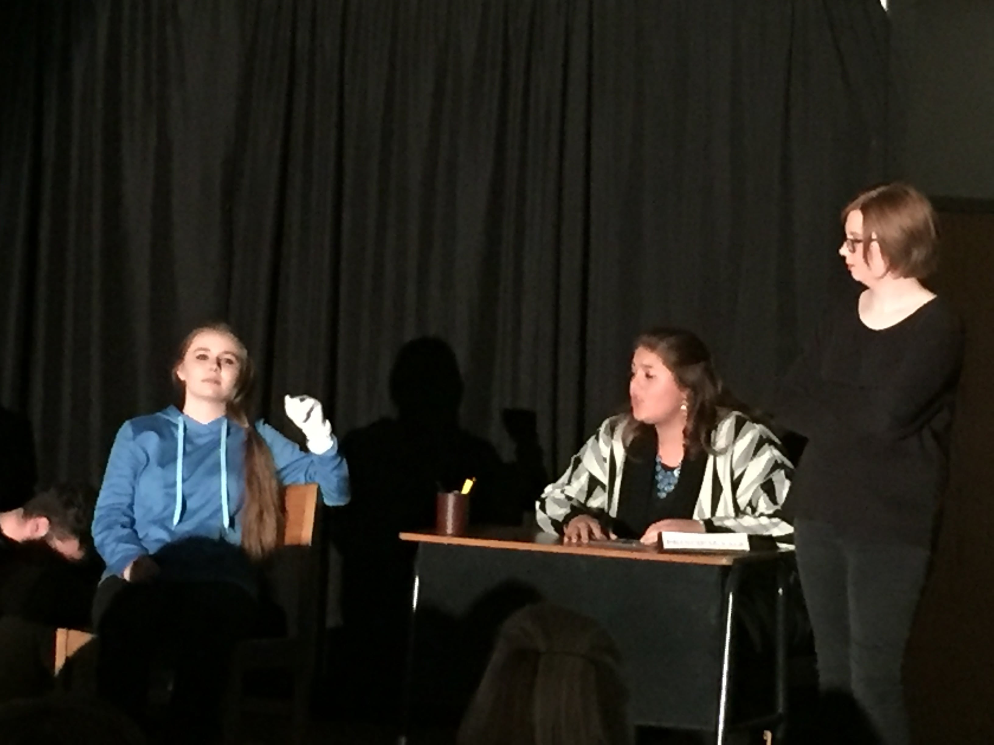 Apostrophe’s by Bradley Hayward was a fun little show for my students to rehearse and perform. It has some characters with just a few lines- and a few with many lines, so it offered a nice challenge while also giving me a chance to cast some newbies or kids who couldn’t commit a lot to memory but wanted to be involved. The humor sprinkled throughout got some great laughs from the audience. The emcee for our show handled the audience interaction like a champ. We had refreshments after the show- plenty of coffee as mentioned in the script!