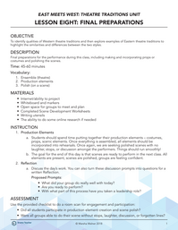 This lesson happens after the performance. Post-show discussion questions are included as well as a post-show reflection.