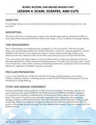 This lesson will focus on creating scars, scrapes, and cuts with stage makeup. Students will reflect on what causes these wounds and will then create a scar, scrape, or cut on a partner using stage makeup.