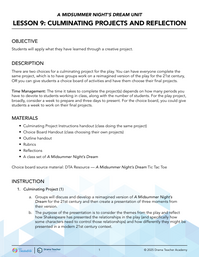 There are two choices for a culminating project for the play. You can have everyone complete the same project, which is to have groups work on a reimagined version of the play for the 21st century, OR you can give students a choice board of activities and have them choose their final projects.