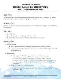 Students will explore using clichés, stereotypes, and overused phrases in dialogue as used in Theatre of the Absurd.