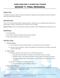This is it! The final rehearsal before students perform. Students focus on getting those last few lines word perfect, reflect on where they are, and do final run throughs.