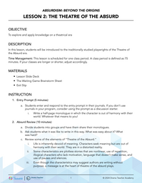 In this lesson, students will be introduced to the traditionally studied playwrights of the Theatre of the Absurd era.