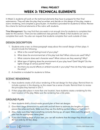 Students write a 2-3 paragraph essay about the overall design of their play. A checklist is included for both technical elements and design description.