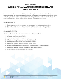 Students hand in all the elements of this project referring back to the included Final Project Assignment Sheet. An assignment sheet is provided to make sure they have everything in the correct order. They must connect this assignment sheet to their packet of submitted materials.