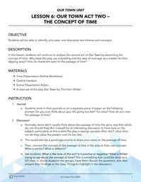 In this lesson, students will continue to analyze the second act of Our Town by examining the concept of time. Why does the play use a wedding and the idea of marriage as a marker for time slipping away? How do characters react to the passage of time?