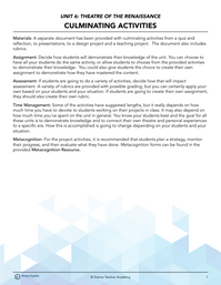 Decide how students will demonstrate their knowledge of the unit. A variety of activities are provided. You can choose to have all your students do the same activity, or allow students to choose how they demonstrate their knowledge. Rubrics are provided for each activity.