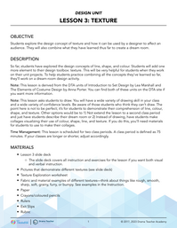Students explore the design concept of texture and how it can be used by a designer to affect an audience. They will also combine what they have learned thus far to create a dream room.