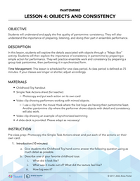 Students will explore the details associated with objects through a “Magic Box” activity. Students will then explore the importance of consistency in pantomime by preparing a simple action for performance. They will practice ensemble work and consistency by preparing a group task pantomime, then performing it in synchronized form.