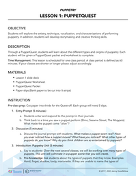 Through a PuppetQuest, students will learn about the different types and origins of puppetry.