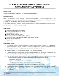 Emergency Lesson Plan: Real World Applications: Dance Captains